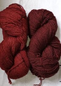 hier wurde eine geringere Dosis Farbe genommen, die Farbe ist ein wenig ungleichmäßig, nicht so stark deckend, ich finde die Struktur der Wolle kommt besser zur Geltung.